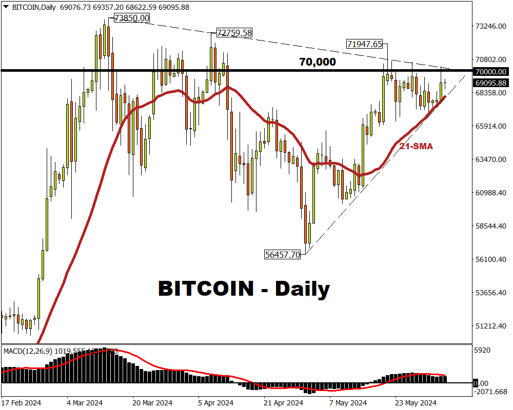 However, Bitcoin’s attempts to secure a daily close above the psychologically-important $70k mark in recent sessions have so far proven unsuccessful.
