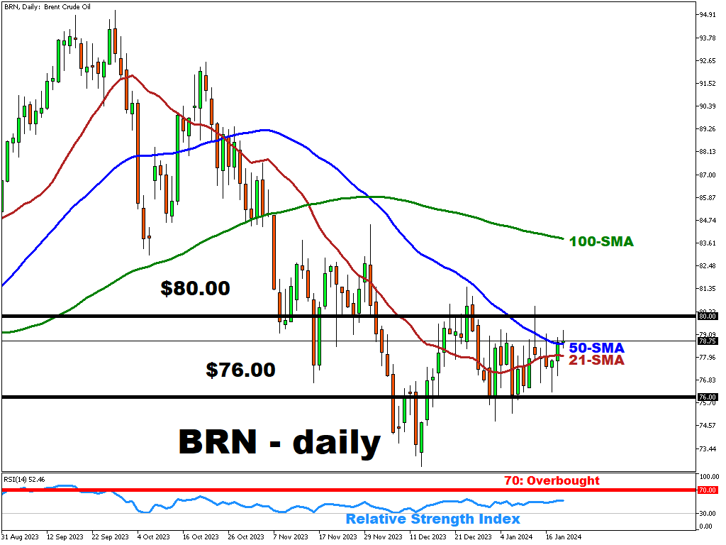 A recent escalation around the Houthi group and repeated attacks on maritime shipping routes in Red Sea continue to keep the risks elevated, thus pushing the BRN towards the $80/bbl.