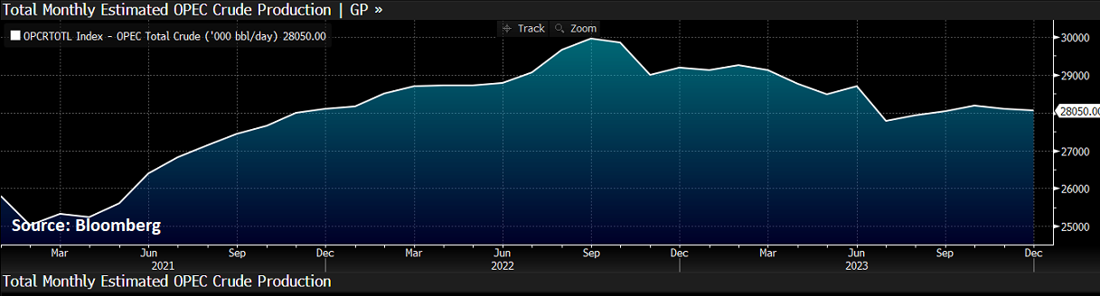 Markets looked reasonably well supplied (according to the IEA) in 2024. However, the potential for a surplus could emerge if OPEC+ was to revise it’s supply cuts in Q2 2024.
