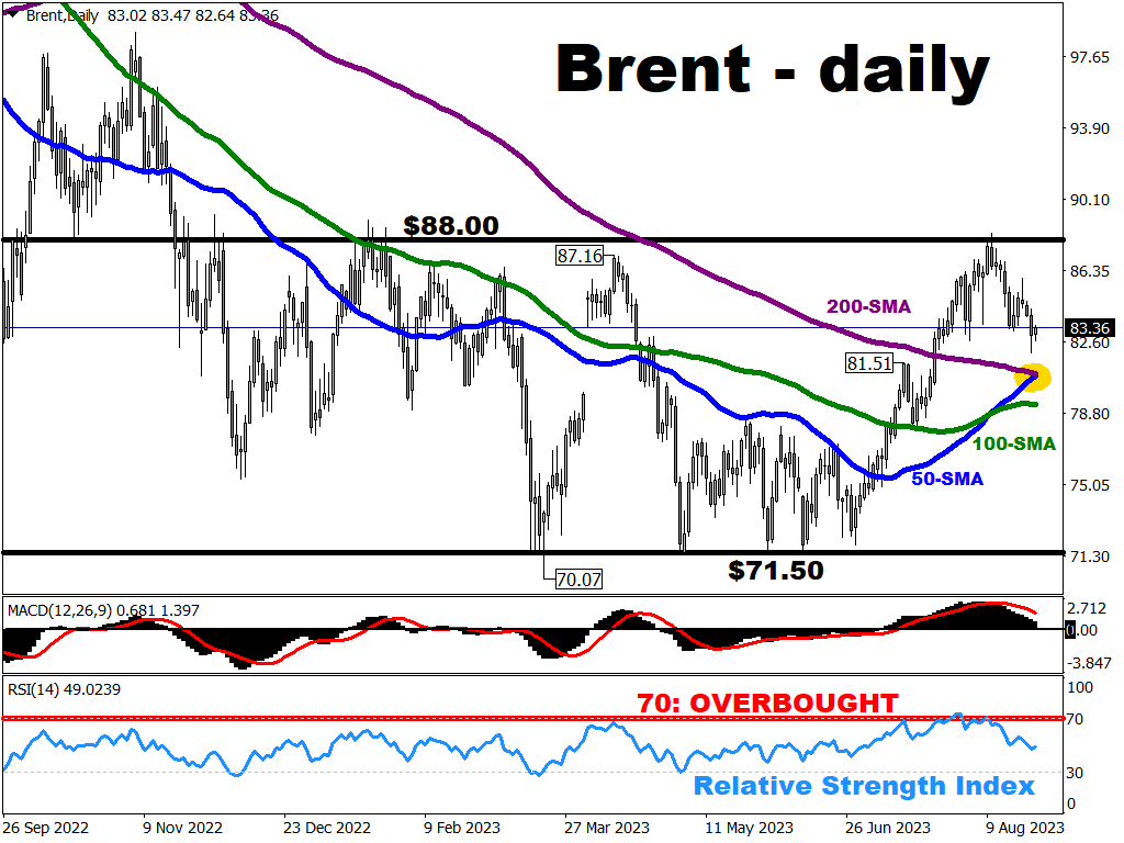 - Brent may yet return into sub-$80/bbl levels, while $88 offers strong resistance