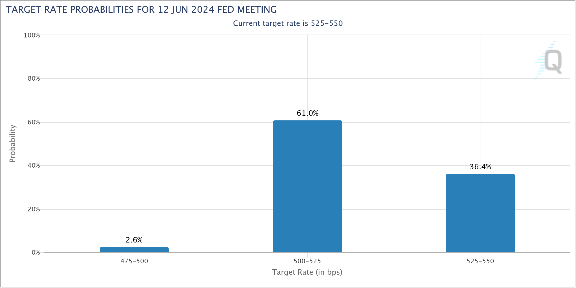 At the moment, the market expects (with 63,6% probability) the Fed to start cutting rates in June 2024.