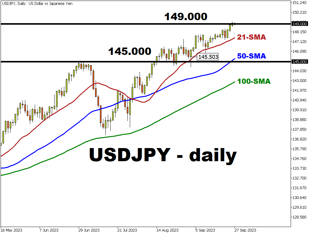 USD/JPY made a fresh cycle high at 149.18 yesterday but backed away from 150 as Finance Minister Suzuki weighed in on the currency.