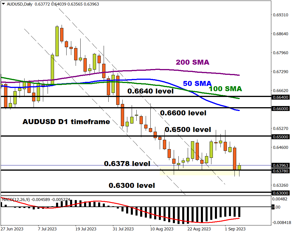 In our week ahead report last Friday we questioned whether the AUDUSD would experience a double-bottom bounce. Despite prices later tumbling on Tuesday after the Reserve Bank of Australia (RBA) left interest rates unchanged, the 0.6378 support continues to fend off bears. Should this level hold, prices may rebound back towards 0.6500. Alternatively, a selloff below 0.6378 could see a decline towards 0.6300.