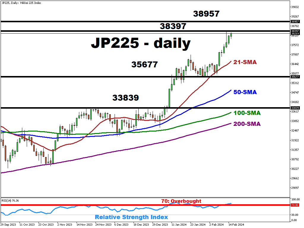 The JP225 index is now trading back above the 38,000 mark, reaching a 34-year high.