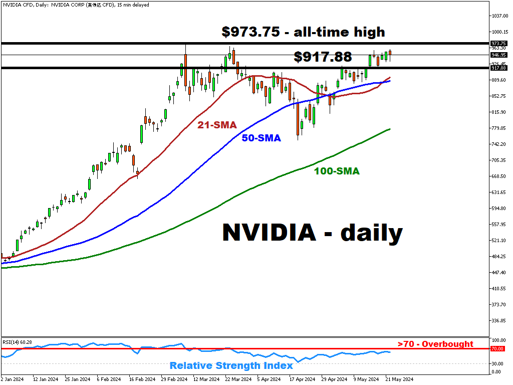 Nvidia climbed above $1000 postmarket after reporting its best-ever quarterly revenue and earnings results, showing 262% year-over-year revenue growth and 585% jump in earnings.