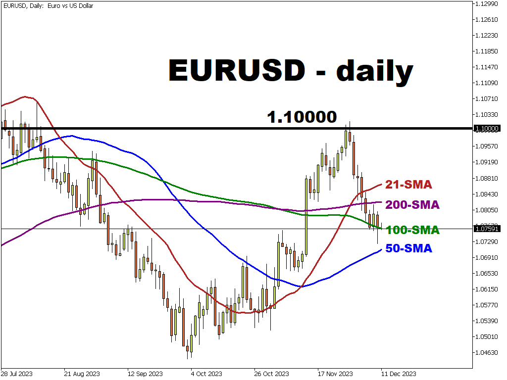 The world’s most popular currency pair has been in the doldrums this month after peaking above 1.10 at the end of November.