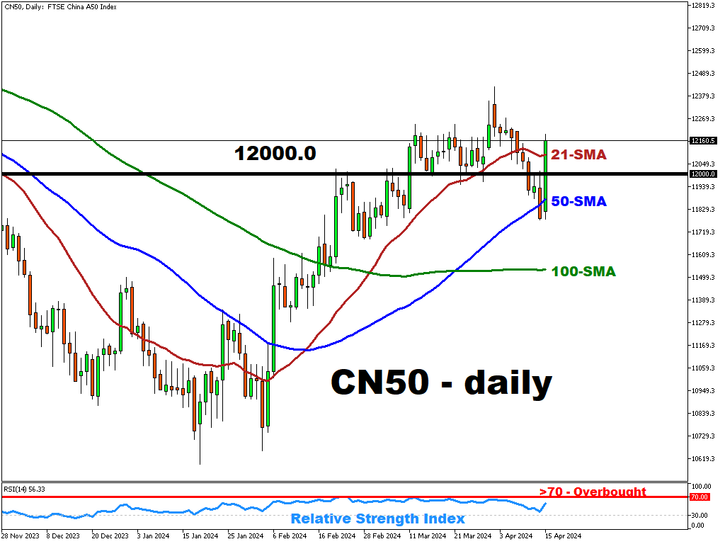 Tuesday, April 16: CN50 index – China key economic data releases.