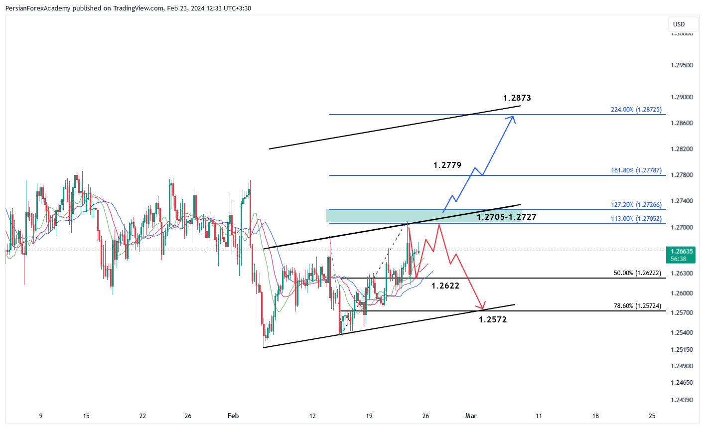 در سناریوی دیگر، در صورت شکست و ثبت یک کلوز کندل تایم چهار ساعته بالای بازه مقاومتی مذکور، احتمال صعود قیمت به اندازه طول کانال صعودی اول تا مقاومت سقف کانال دوم در محدوده 1.2873 دلار وجود دارد، که در این بین مقاومت فیبوی 161.8 درصد در عدد 1.2779، روئیت خواهد شد.