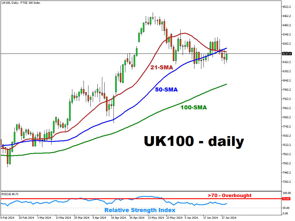 В условиях политической неопределенности трейдеры с меньшей склонностью к риску могут концентрироваться на менее волатильных активах, таких как индекс UK100.